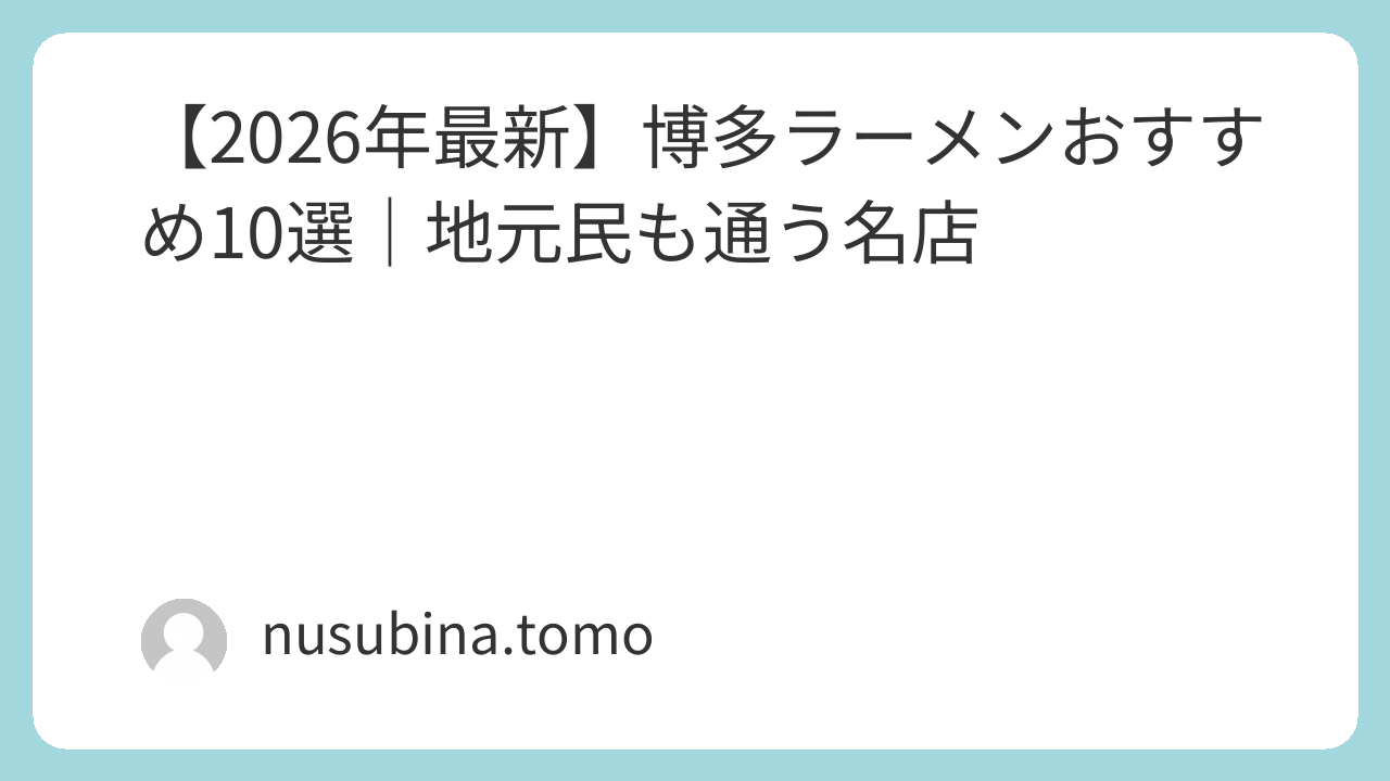 博多ラーメンおすすめ10選|地元民も通う人気店【2026年】
